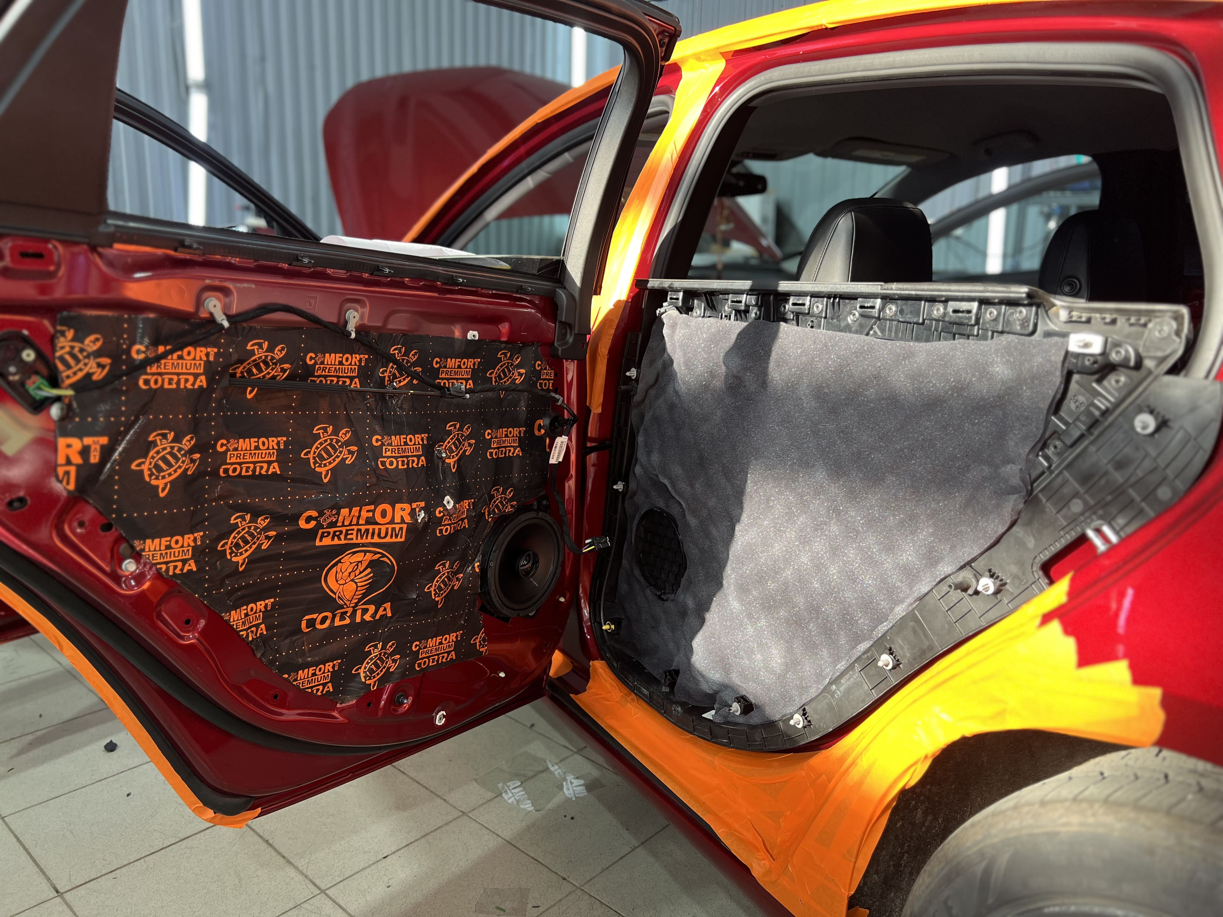Двери и дверь багажника – важные элементы шумоизоляции, через которые проникают звуки улицы и ветра. Мы обработали их в несколько слоев, чтобы обеспечить тишину и улучшить акустику.
