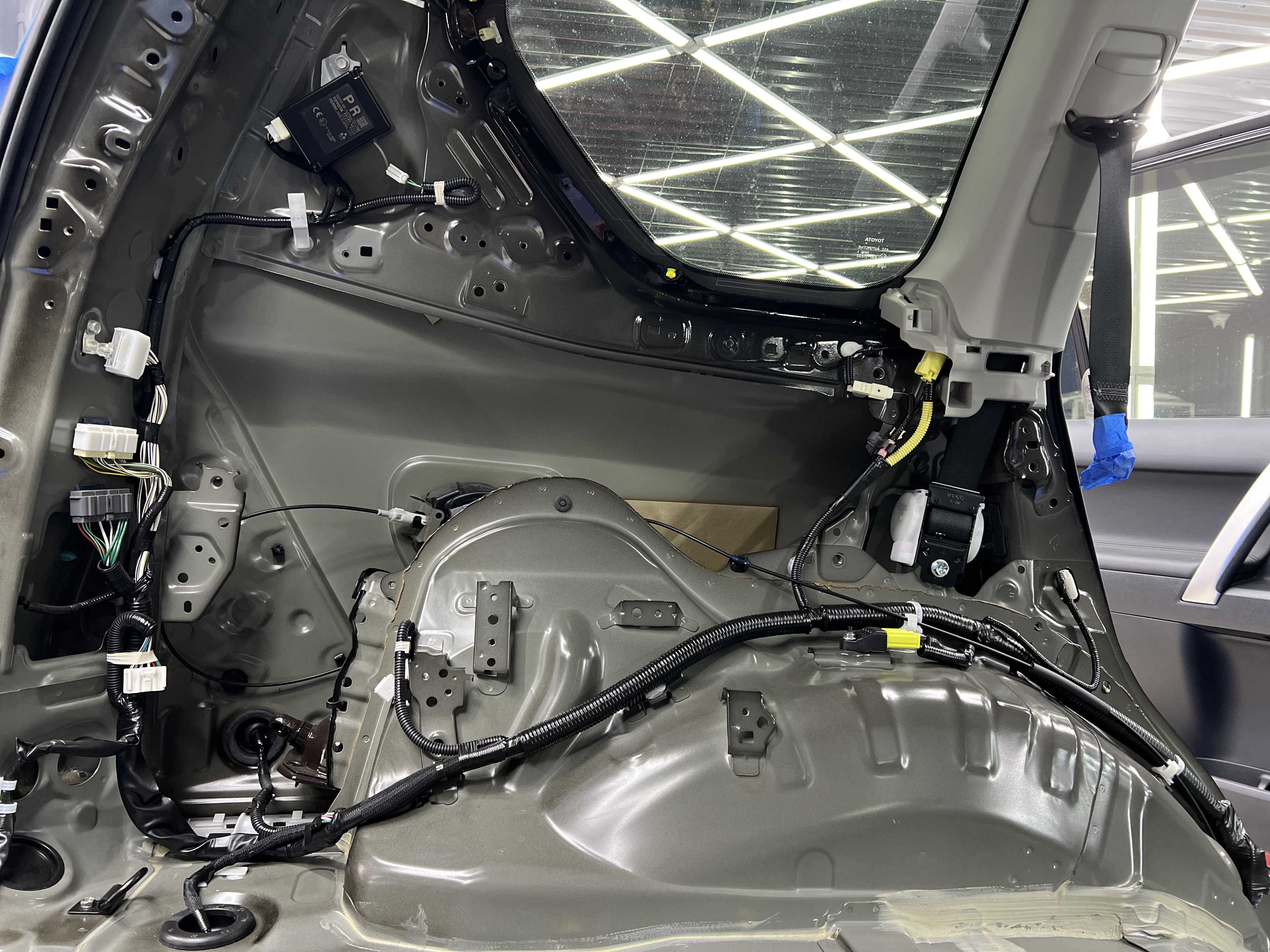 Работа началась с демонтажа обшивки салона и багажника, обнажив чистый металл, мы подготовили автомобиль к работе.